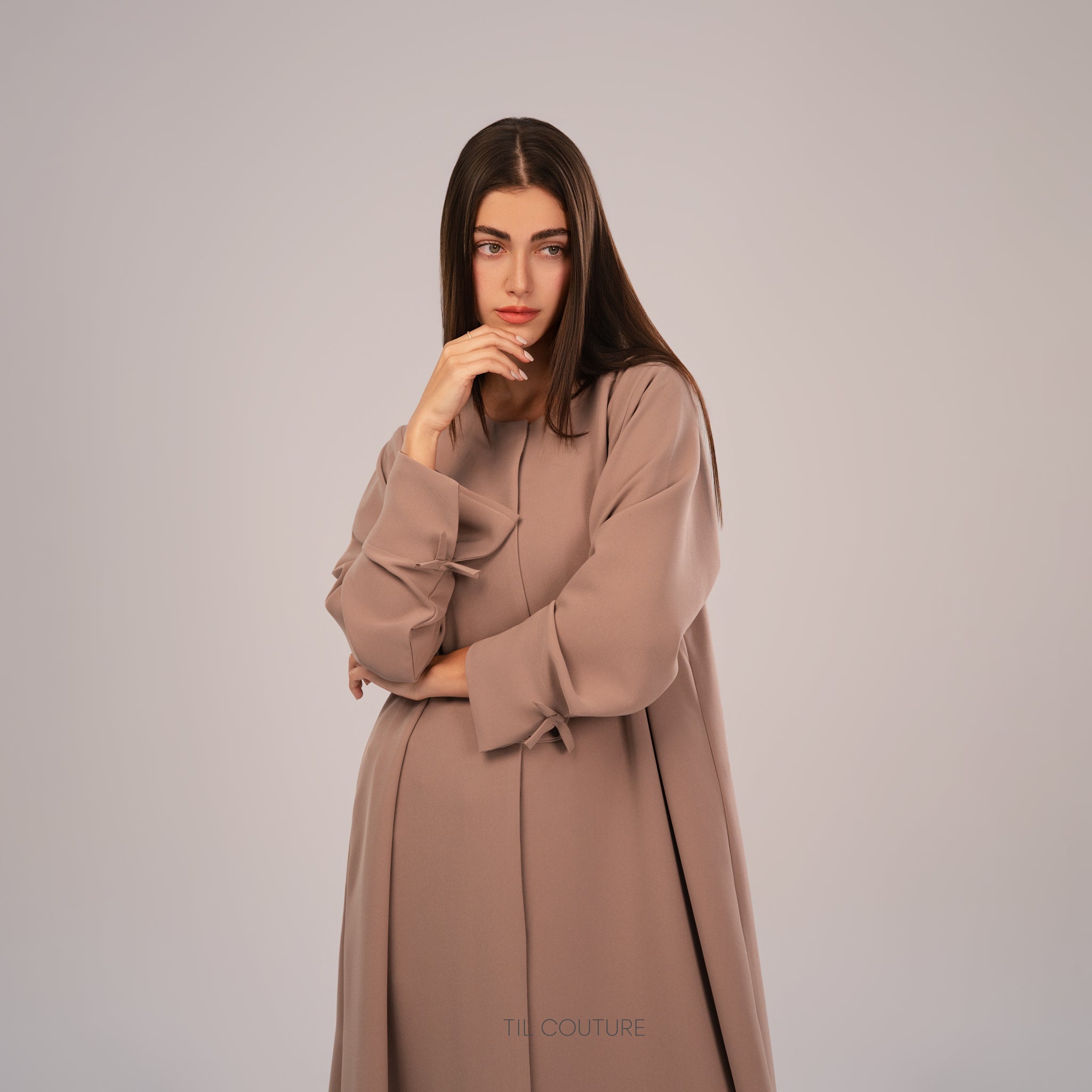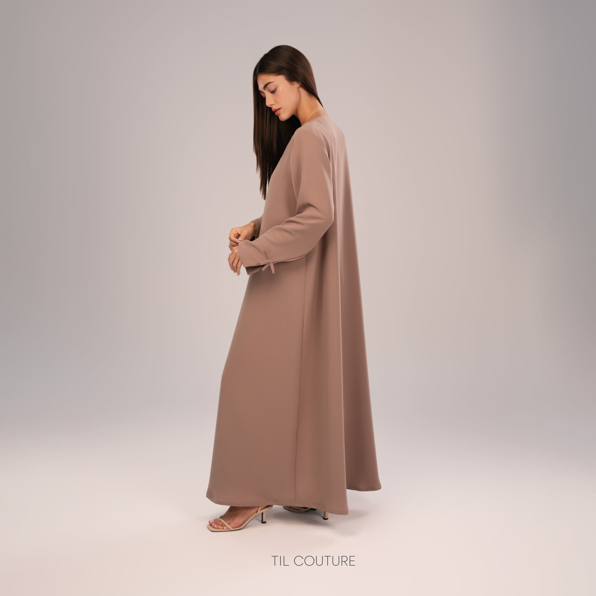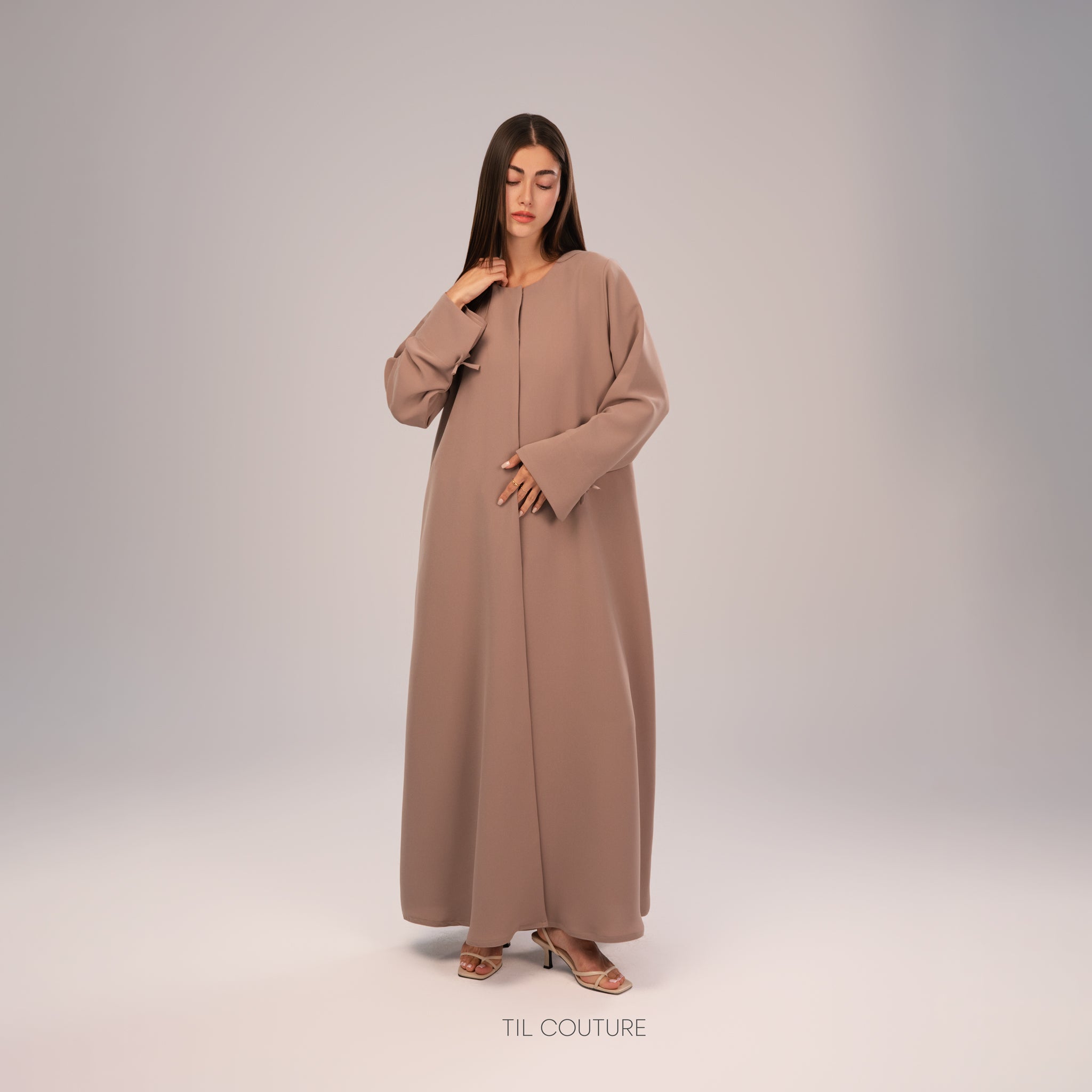 Made from crepe fabric with a subtle shimmer and textured finish, this abaya is perfect for daily wear and ideal for the autumn season.