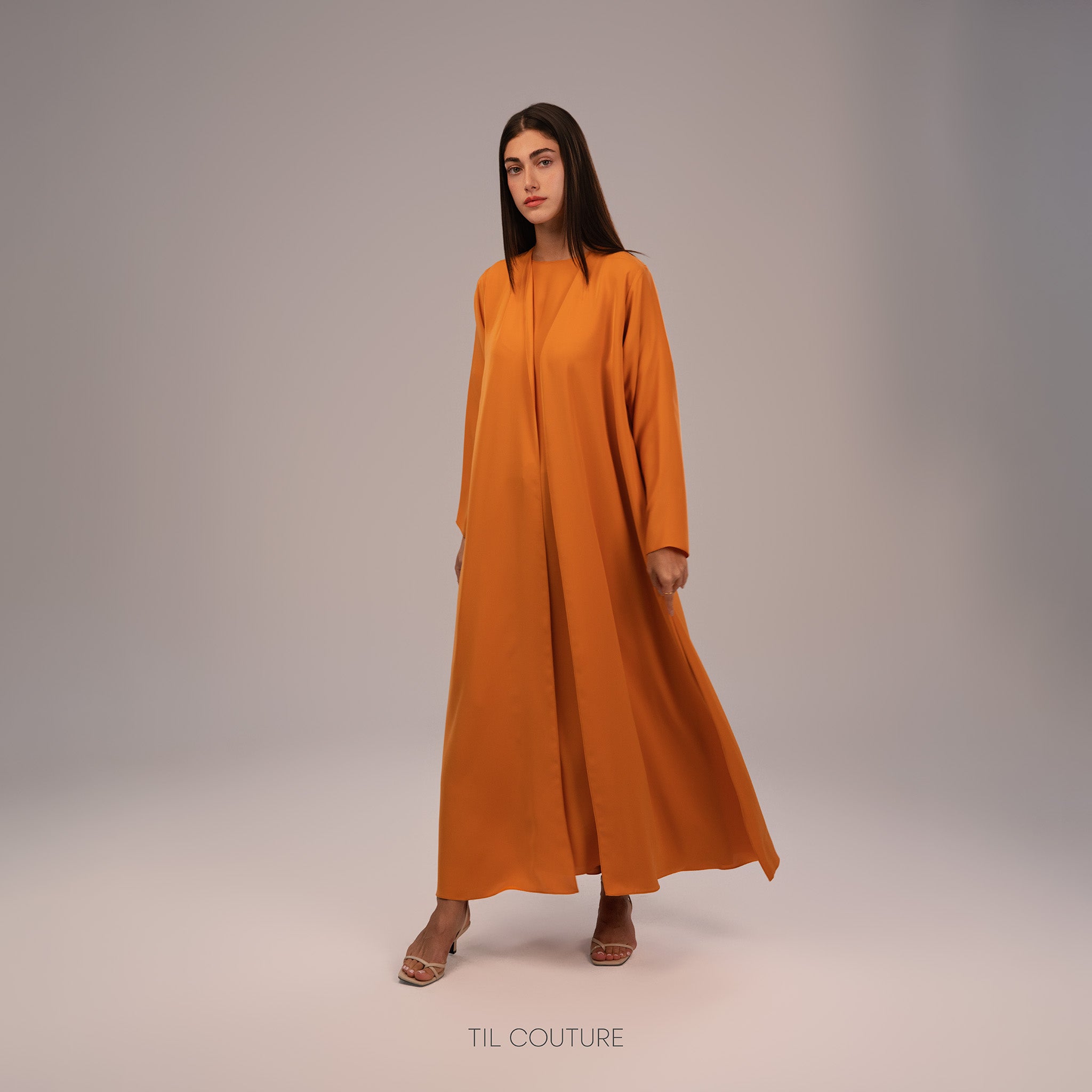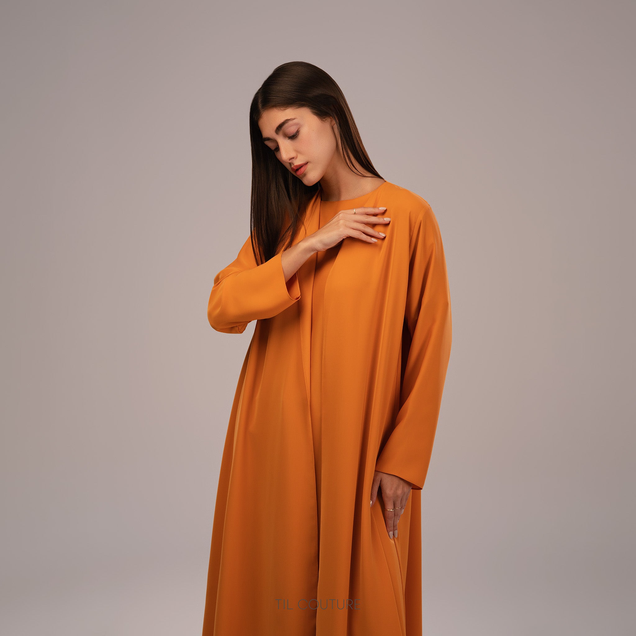 This abaya is made of Korean Neda fabric, accompanied by a dress made from the same material as the abaya, and a matching shawl