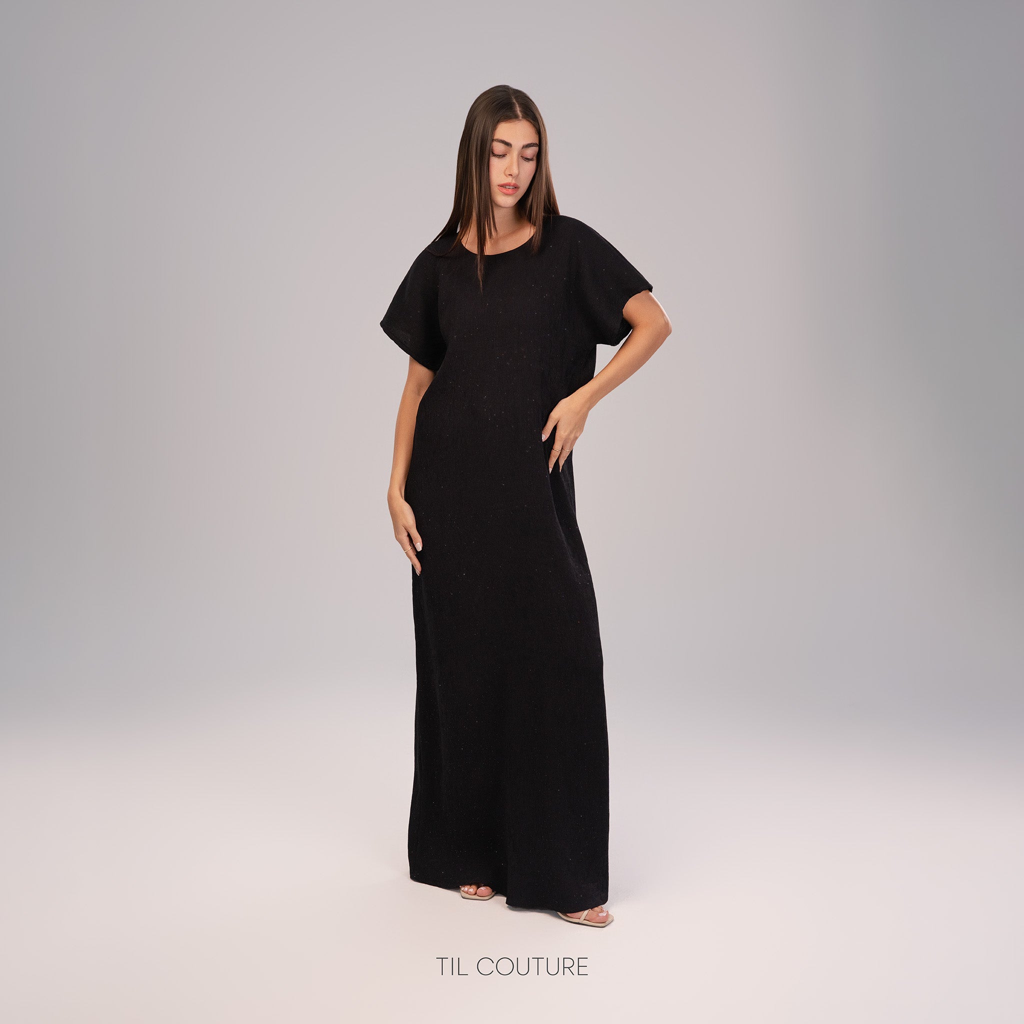 Crafted from pleated cotton with fine shimmering accents, this dress offers effortless elegance for everyday wear or under an abaya.